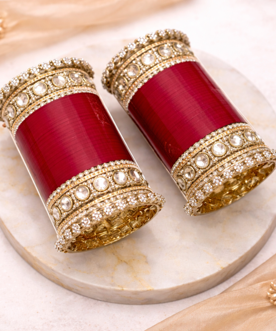 Crafted to reflect pure opulence, this heavy designer chura is perfect for brides who want the very best in style, sparkle, and presence on their special day.