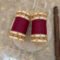 - Design: Deep maroon base with white-gold borders, gold droplet accents & emerald-tone stones